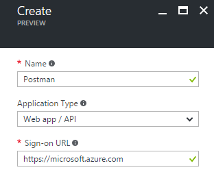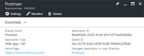 Create an Active Directory application (Service Principal) that represents your Postman instance.