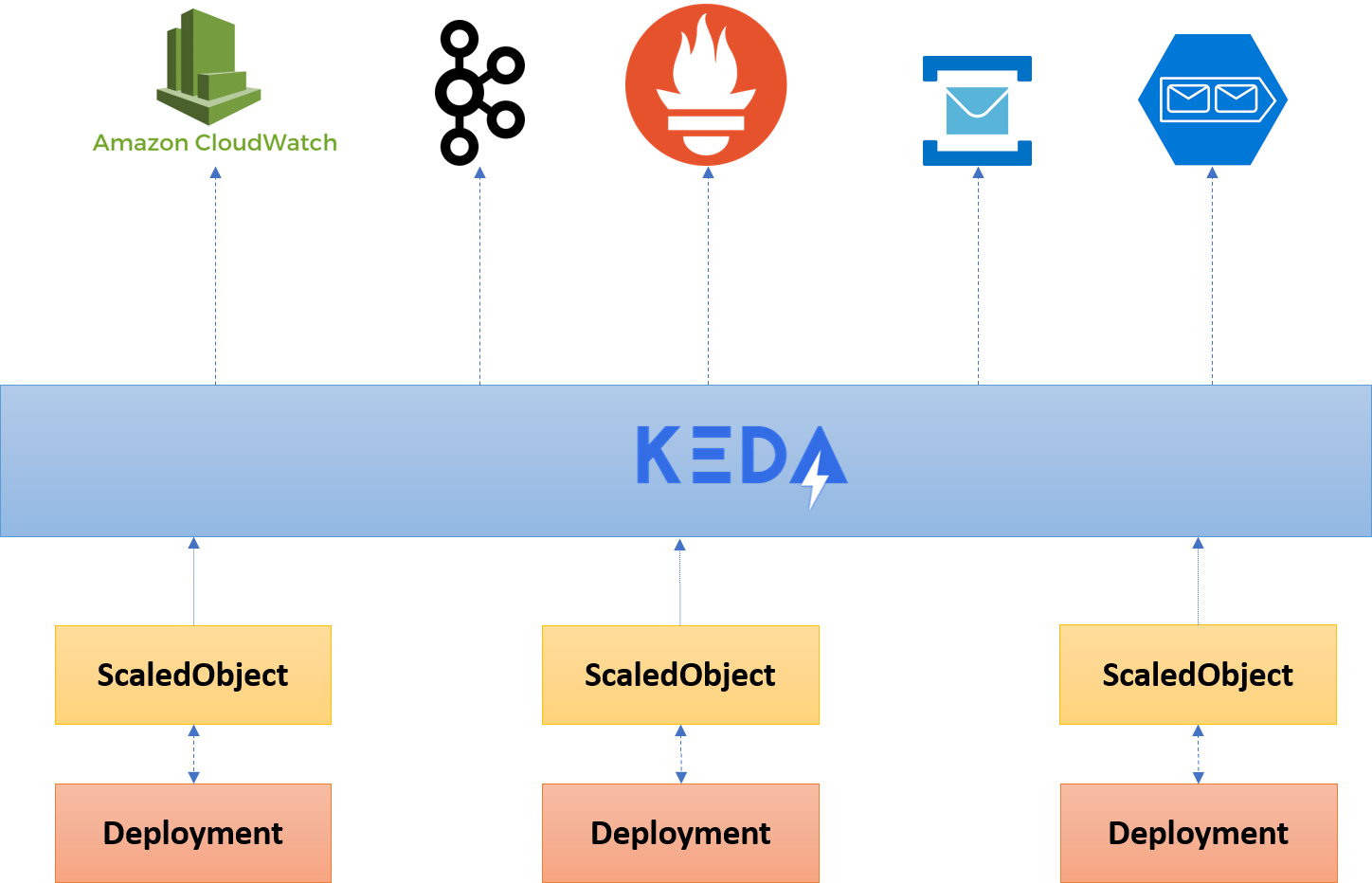 With Kubernetes Event-Driven Autoscaling (KEDA), however, it pulls from a variety of sources and automatically scales your deployments from 0 to n-instances based on your configuration in the ScaledObject.