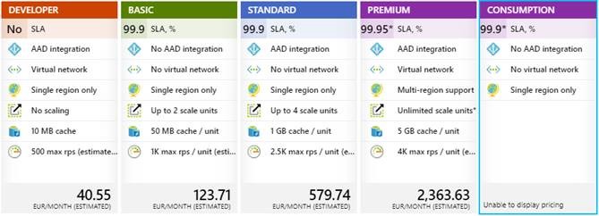 Of course, this tier does have some limitations compared to the other tiers, as it’s considered to be a lighter-weight version of API Management, but don’t let that scare you off, as you’ll notice you can perfectly make do without several of the below mentioned features. If this is not the case, then you’ll be better off looking at 1 of the full-blown dedicated tiers.