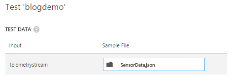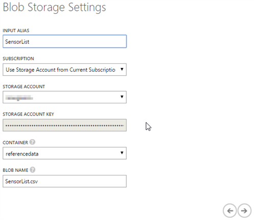 It is also possible to add reference data to your query, so that this data can be used to enrich the query or take extra filters or decisions. For that, it is needed to add a new input to the query of type ‘Reference data’ and browse to an existing blob (I always use CSV files for this). In this sample, I am uploading the SensorList.csv that you can view on our github account.