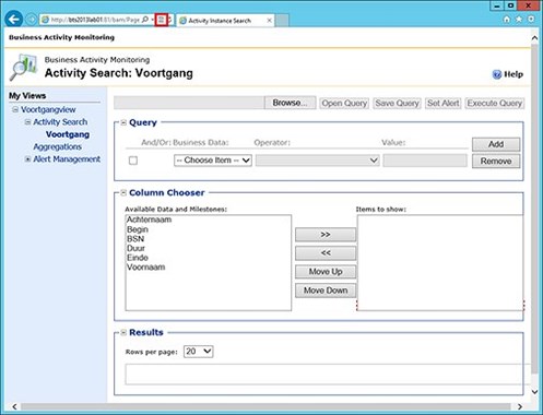 When using Internet Explorer 10 for viewing the BAM Portal you will notice that, in the Column Chooser section, you’re not able to move columns to the Items to show List Box. You should check if you are running Internet Explorer in Compatibility Mode.