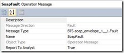 –  Modify the logical Orchestration Send Port and add a Fault Message.  To keep it general, you can choose the SoapFault (which is part of the Microsoft.BizTalk.GlobalPropertySchemas).