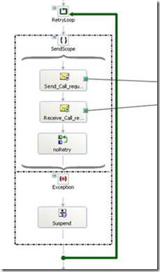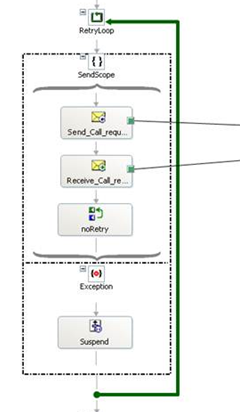 –  If the web service call fails: set bSuccess == false in the exception handler.  If the call succeeds, set bSuccess == true, so the orchestration will exit the loop.