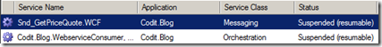 Now we’ve created a resumable web service call from within an orchestration.  When testing the orchestration in a failure scenario, you will see that there are still two suspended service instances: