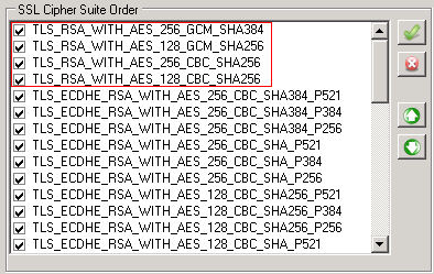 As the order of the SSL Cipher Suites did not seem to be correct, based on what we got to see in Wireshark, the third party tool named ‘IISCrypto40’ was used to verify the order of the cipher suites.