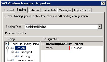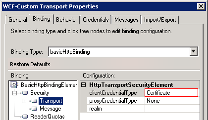 While this shouldn’t be required, since the aforementioned registry-settings should’ve made sure that TLS1.2 is being used, the section below should be added into the custom endpoint behavior.