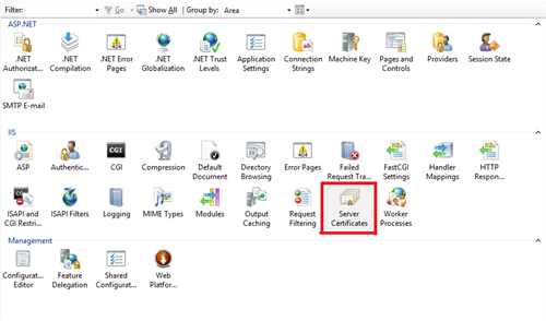 For testing purposes we will generate a Self-Signed certificate using IIS: