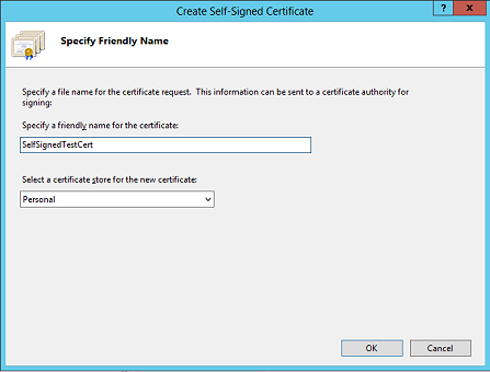 - Specify a friendly name, like SelfSignedTestCert, and click the OK button.