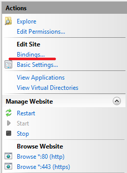 This time we want to receive messages using SSL, so we have to add an https binding in IIS.