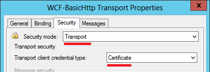- Select the “Security” Tab, Select “Transport” as Security mode