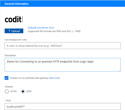 In this article, I will show you how to connect to on-premise hosted HTTP endpoints (which now has public access) from Logic Apps. We will do this by using the Logic Apps on-premise data gateway and Logic Apps custom connector. This feature is recently available by the Logic Apps product team. For the people who had never used on-premise data gateway before, please read my previous blog post “Installing and Configuring on-premise data gateway for Logic Apps” which contains a detailed explanation of the Logic App on-premise data gateway.