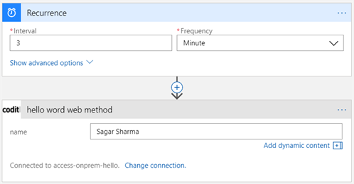 • Enter the value for your name parameter and with that your final logic app should look like the following:
