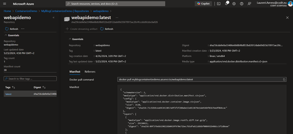 There might be another big shift coming in .NET containerization with .NET Aspire. I’m not yet an expert on this, but this method overrides the need for things like docker images, and container registries. You just make a .NET Aspire application and then you can generate a manifest JSON file based on the application. This manifest will describe the full application and all its dependencies, and then with the Azure developer CLI (azd) you can just run azd init & azd up.
