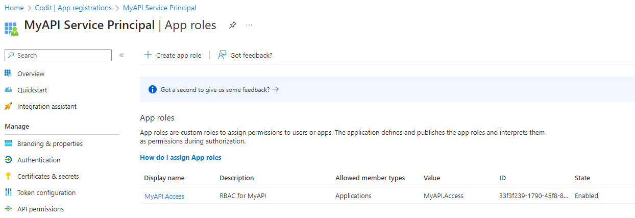 To do this, create an App Registration in Entra ID, and then an AppRole.