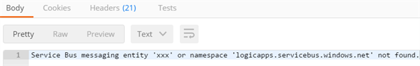 The outcome of Logic App 1 also meets the expectations, as the response of Logic App 2 is returned to the consuming client.