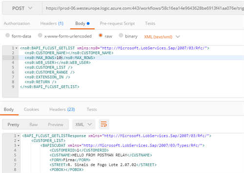 You can test this Logic App with Postman, as an INPUT provide your SAP XML and the result of your call will be the result XML of SAP.09