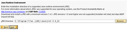 - Download and install JRE with minimum version 1.4.2. Do not install a JRE with version higher than 1.6 because that is not supported. You will be able to start the installer, but the ABAP import step will fail.