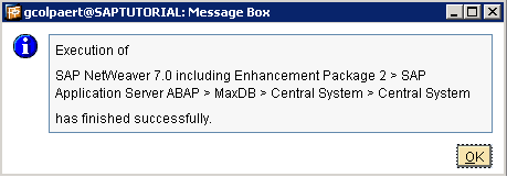 If all goes well you should see following Message Box popping up. Congratulations you are now the official owner of your own SAP system.