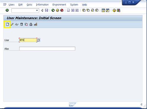 In the User field type the name of the new user and click the Create button in the top left corner.