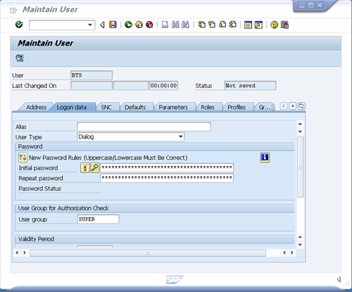 In the Profiles tab assign SAP_ALL and SAP_NEW as profiles for this user.