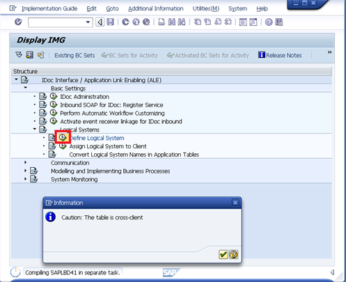Select the Define Logical System and click the Create button. Accept the cross-client warning.