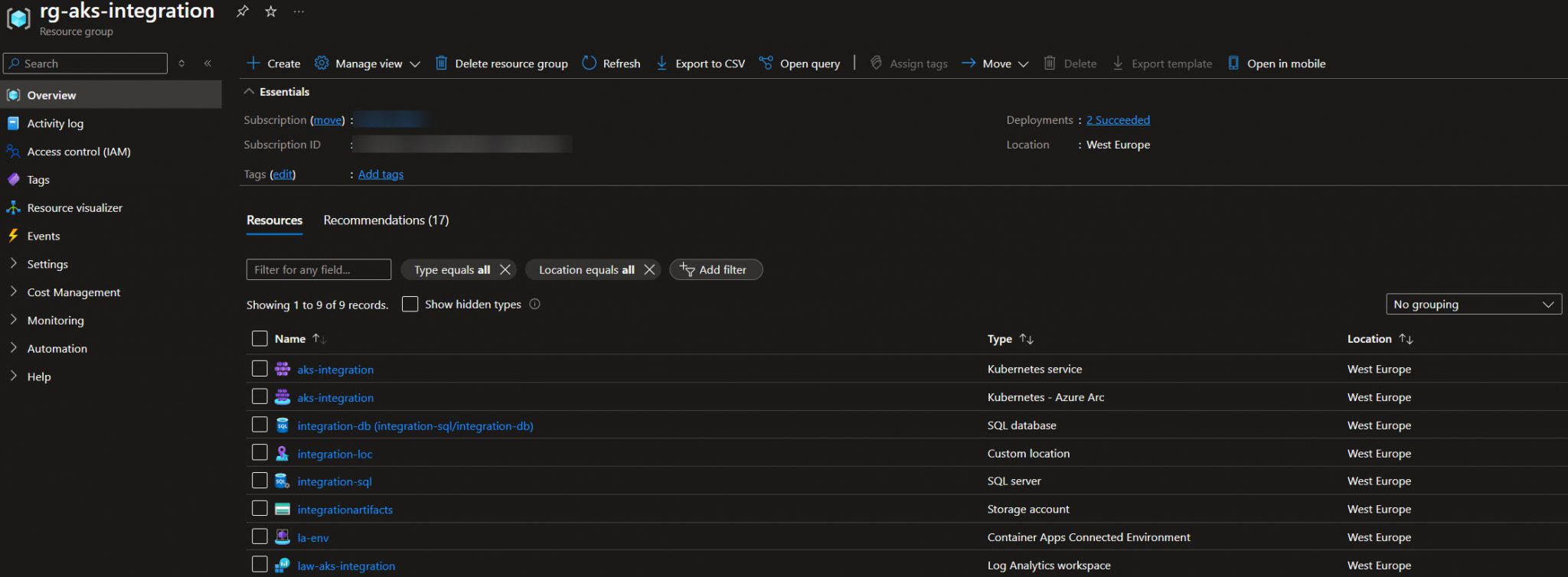 We can check the resources created so far in the Azure portal. Note that, the following image doesn’t include the VNET, private endpoint, DNS, etc., as I created them in a separate resource group.