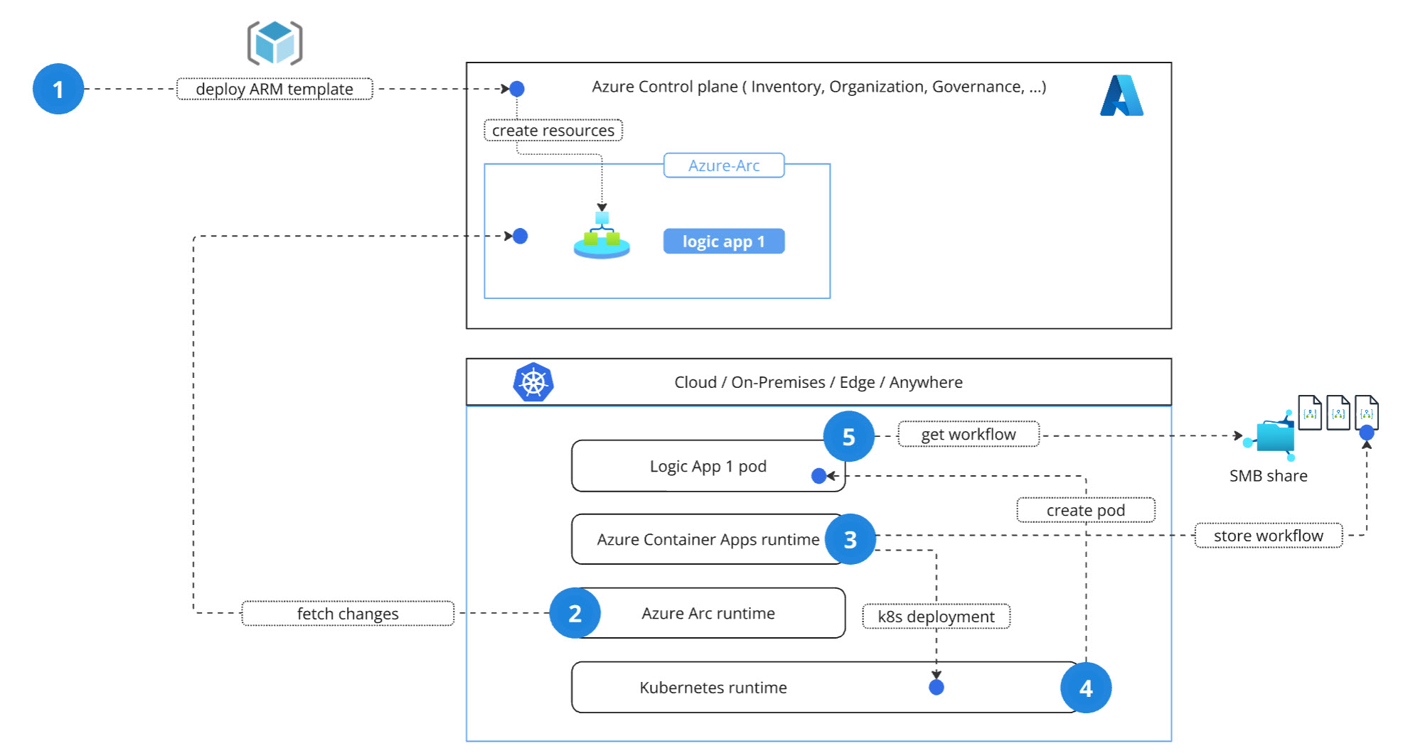 - Use Azure Arc to extend Logic Apps to Kubernetes environments, offering flexibility to deploy workflows in virtually anywhere ( cloud, on-premises, edge).