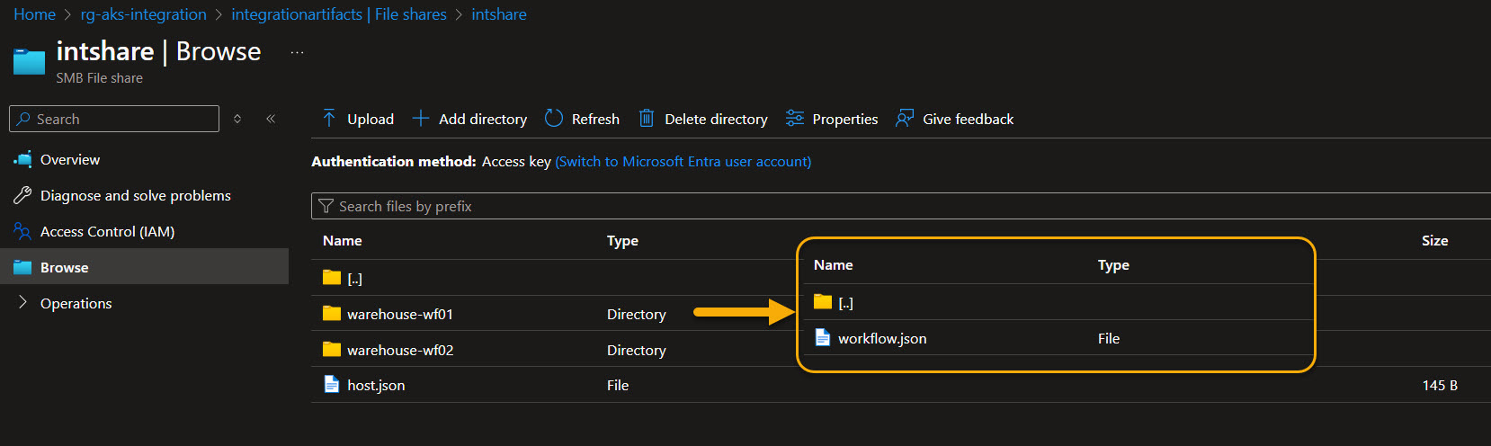 - I chose the simplest approach by creating a subfolder in the SMB share, naming it after my workflow (e.g., warehouse-wf01), and uploading the workflow definition file (workflow.json).