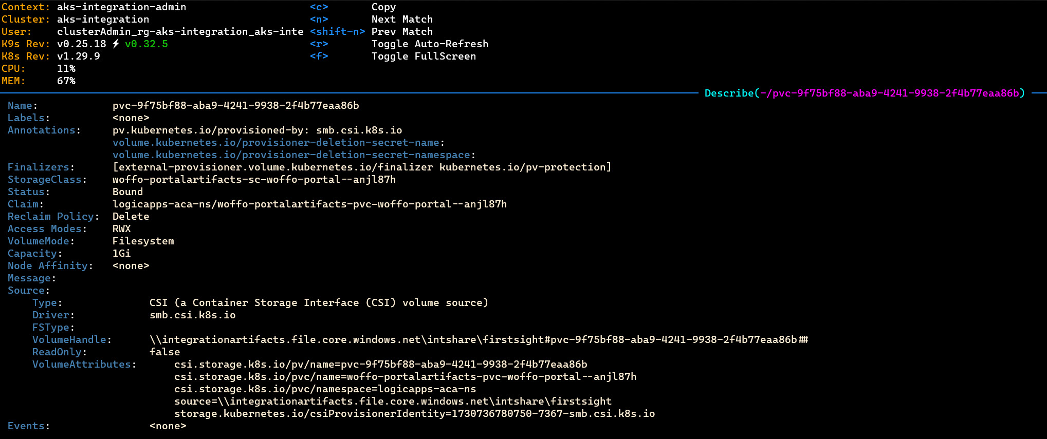 - The LogicApps pod contains the “logicapps-base” container that will be responsible to fetch the workflow from the SMB share and host it