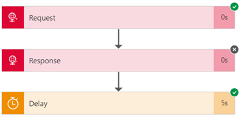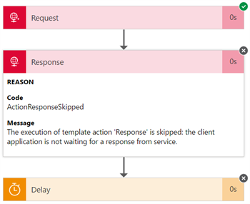 Consider the following Logic App. It starts with a request / response, followed by additional processing logic that is simulated by a Delay shape.