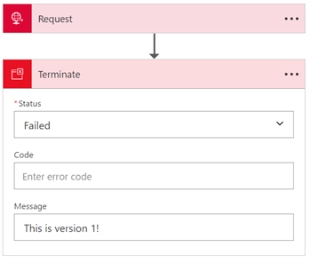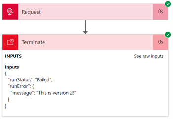 Then I’ve modified this Logic App so it terminates with the message “This is version 2!”. Afterwards, I’ve resubmitted the failed v1 instance and it terminated with the “This is version 2!” message.