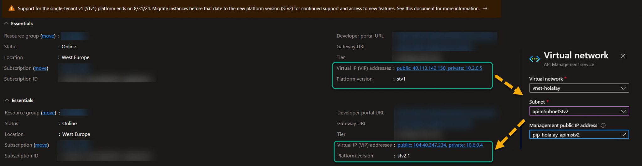 If you are running Azure API management services, you’ve probably noticed the following message in the Azure portal: “Support for the single-tenant v1 (STv1) platform ends on 8/31/24. Migrate instances before that date to the new platform version (STv2) for continued support and access to new features“.