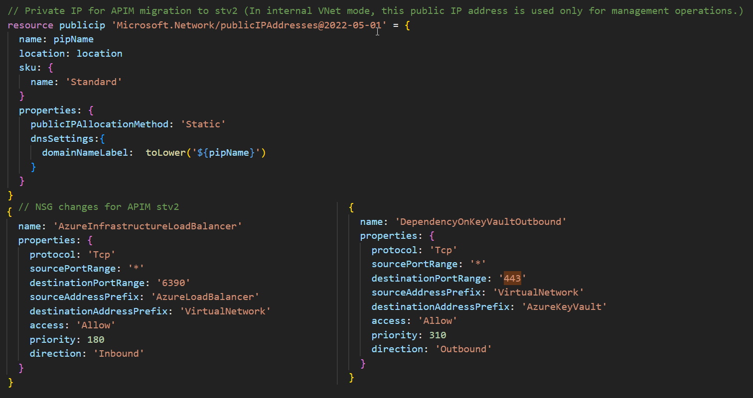 For this blog post, we triggered the migration using the Azure Portal. However, it is advised to automate everything as code. Remember to update the APIM service resource by changing the API version (e.g., 2023-05-01-preview), passing the newly created subnet id, and by adding the publicIpAddressId value.