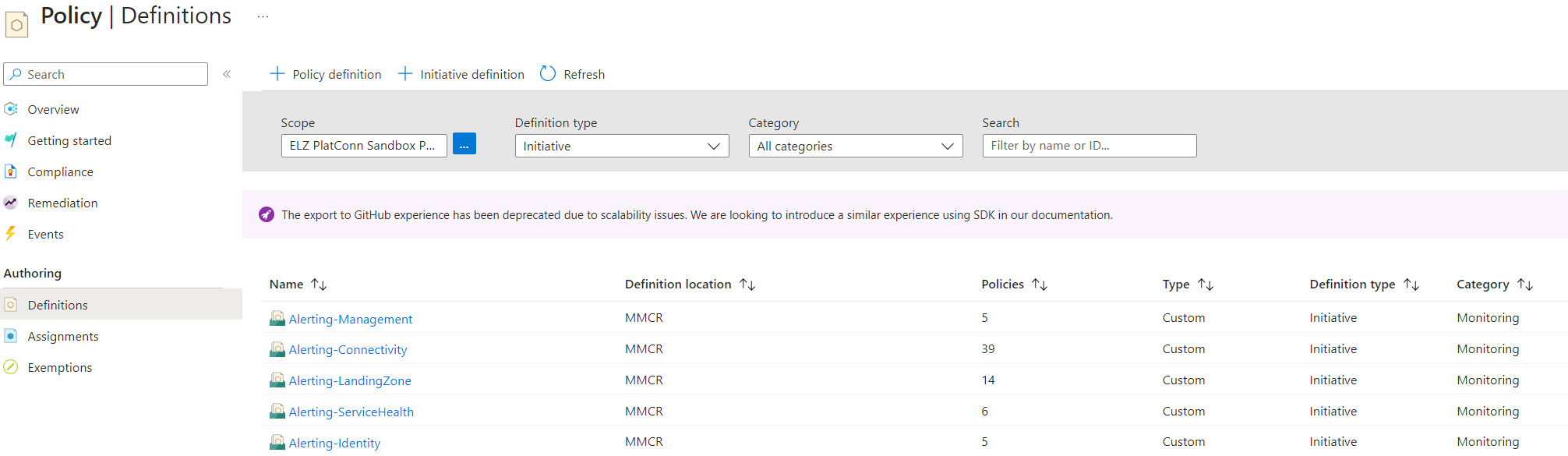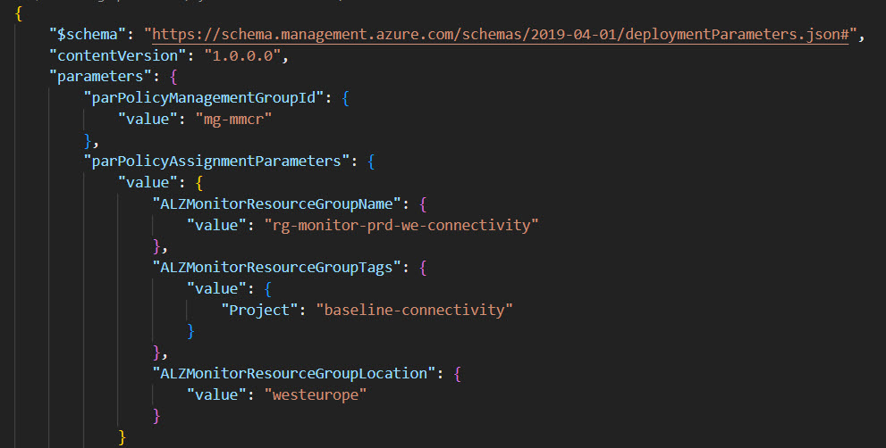 - Example of deployment command to create the policy initiatives that groupes: az deployment mg create –template-file ./src/resources/Microsoft.Authorization/policySetDefinitions/ALZ-MonitorConnectivity.json –location “westeurope” –management-group-id “mg-mmcr”