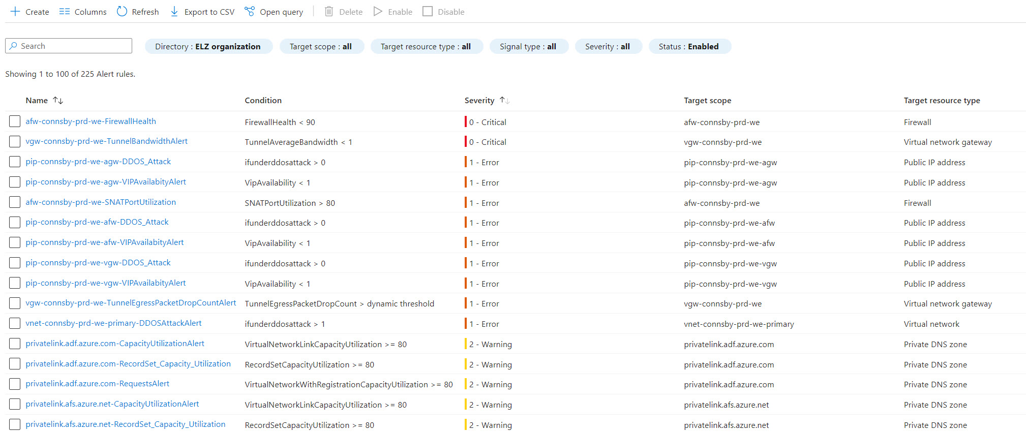 - The alert rules have been created in the same resource group as the resource they belong to.