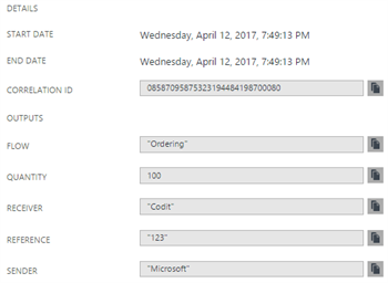 The first place where issues are investigated is the Azure Portal. So it would be very helpful to have these business properties displayed over there. Tracked properties are nowhere to be found in the Azure Portal, but fortunately the outputs are displayed nicely in the Run Details section. There is however no option to search for a specific Logic App run, based on these outputs.
