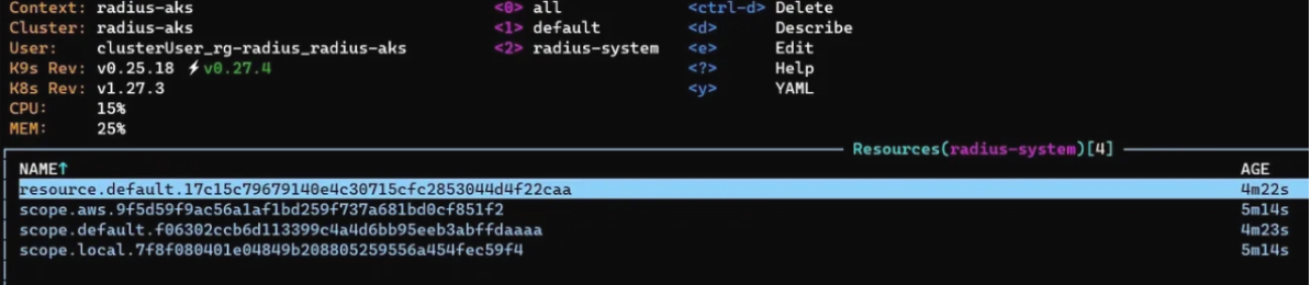 For this exercise, I used the “rad init” command, but when I was asked whether to create a new application, I selected ‘No’ to have better control of the application creation. The different objects managed by Radius can be found in the universal control plane CRD: “resources.ucp.dev”.