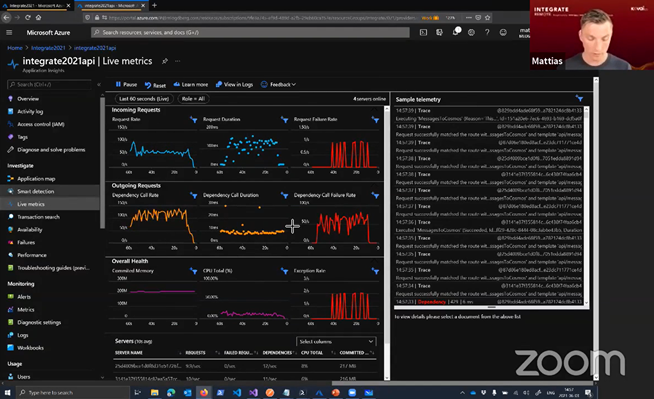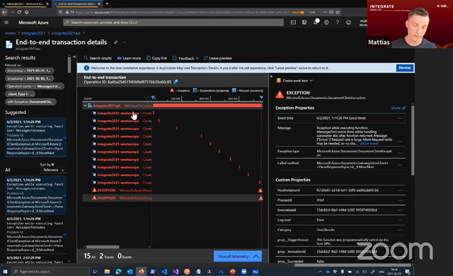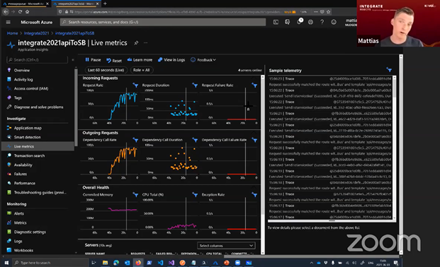 On the third demo Michael showed us the same setup but with the use of Application Insights, which is currently only available the new Logic App Standard.