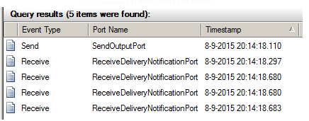 After running the interface, the Tracked Message Events for the orchestration now show that multiple Delivery Notifications have been received: