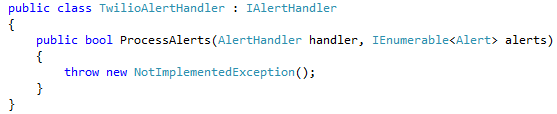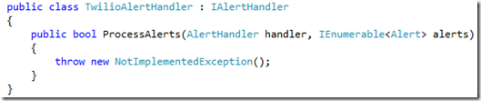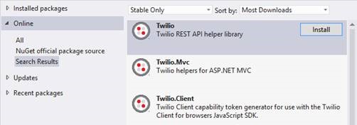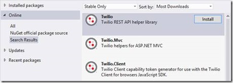 One more thing to do before we can start our implementation of the ProcessAlerts method is to add a reference to the Twilio REST API through NuGet. More information about Twilio can be found here.