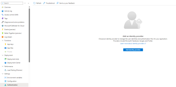 Enabling Authentication on the Azure Function
