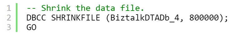 The next step in our process to get a smaller database is to shrink the database itself. SQL manages the shrink of its databases very well. The BizTalk environment stayed stable during the entire process.