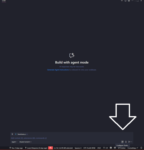 - Set your github copilot to Agent mode