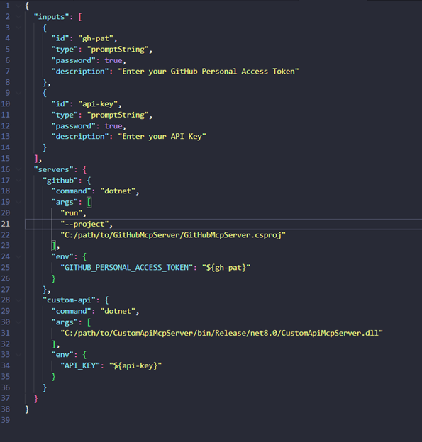 You set it up through an MCP configuration file (typically named mcp.json) that tells Copilot how to connect to your server.